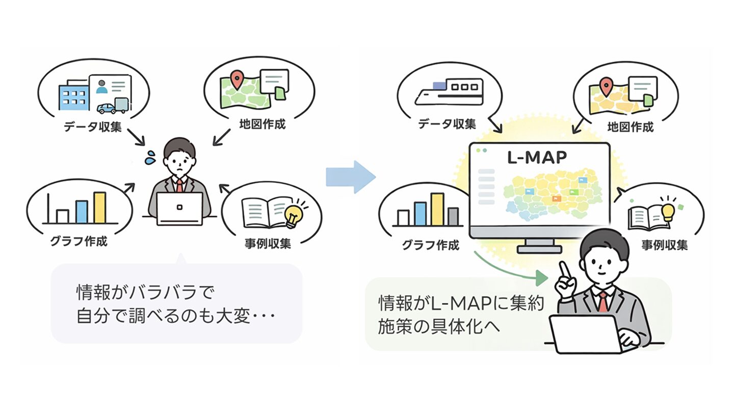 このような複雑で属人的な課題を、仕組みの力でシンプルに。L-MAPが目指すのは、誰もが無理なく進められる交通計画の基盤です。