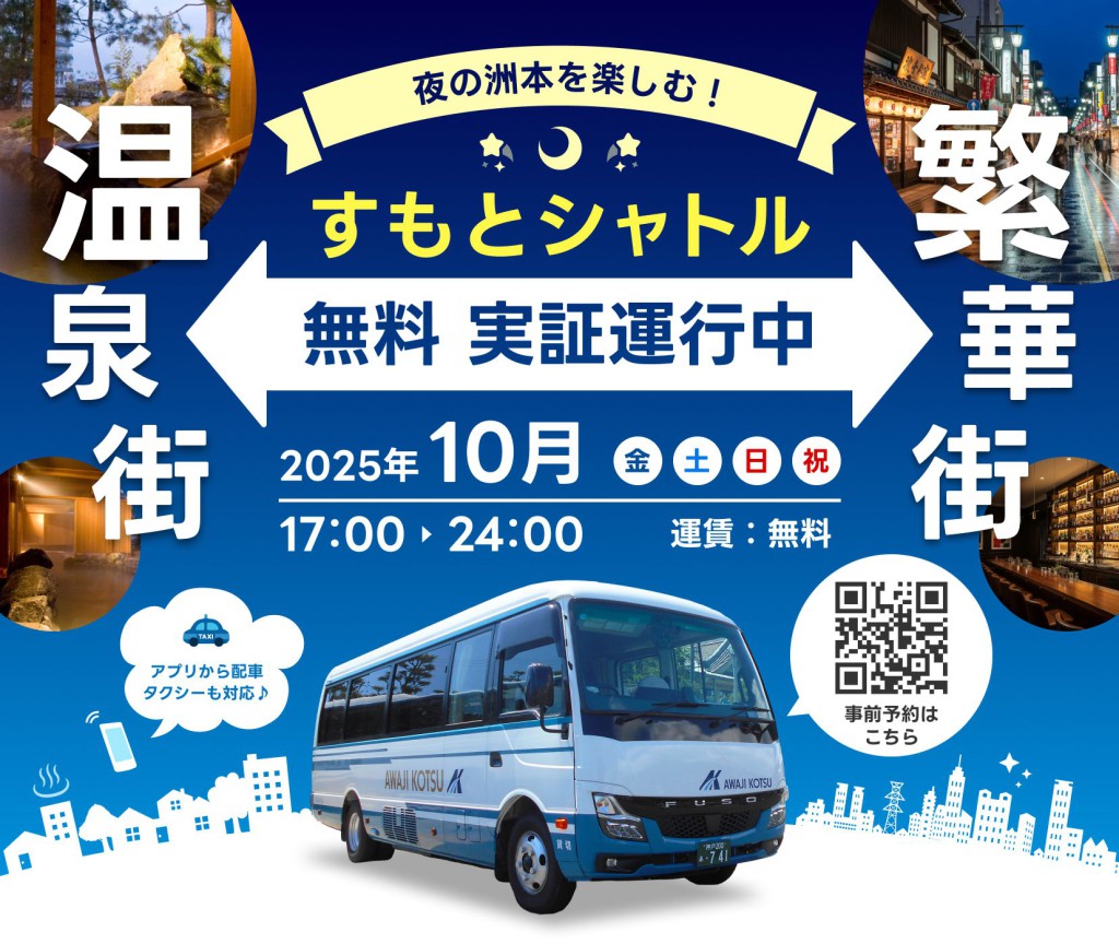 洲本市「観光客の夜間移動ニーズに応え、地域一帯の周遊利便性と賑わい創出につなげたい」