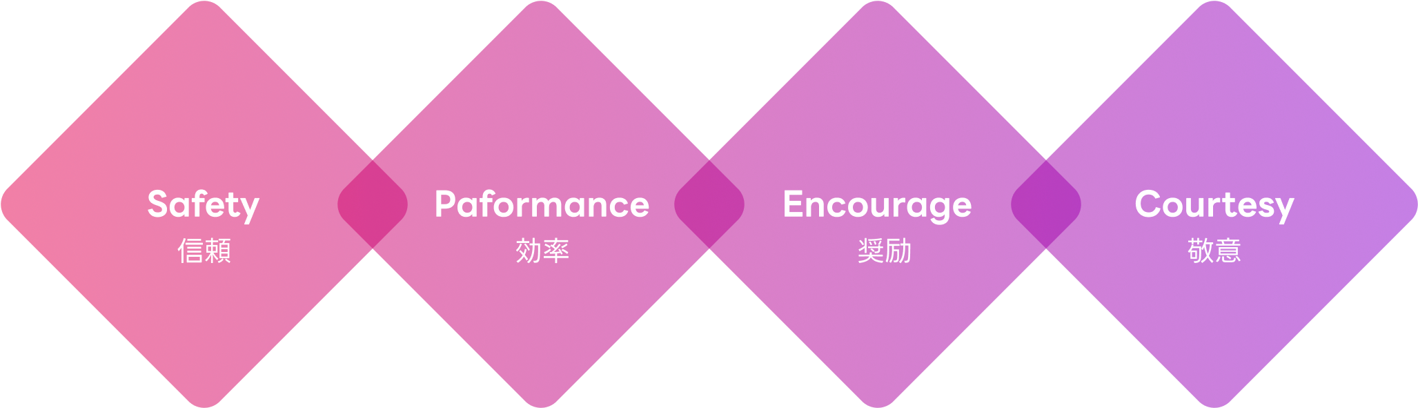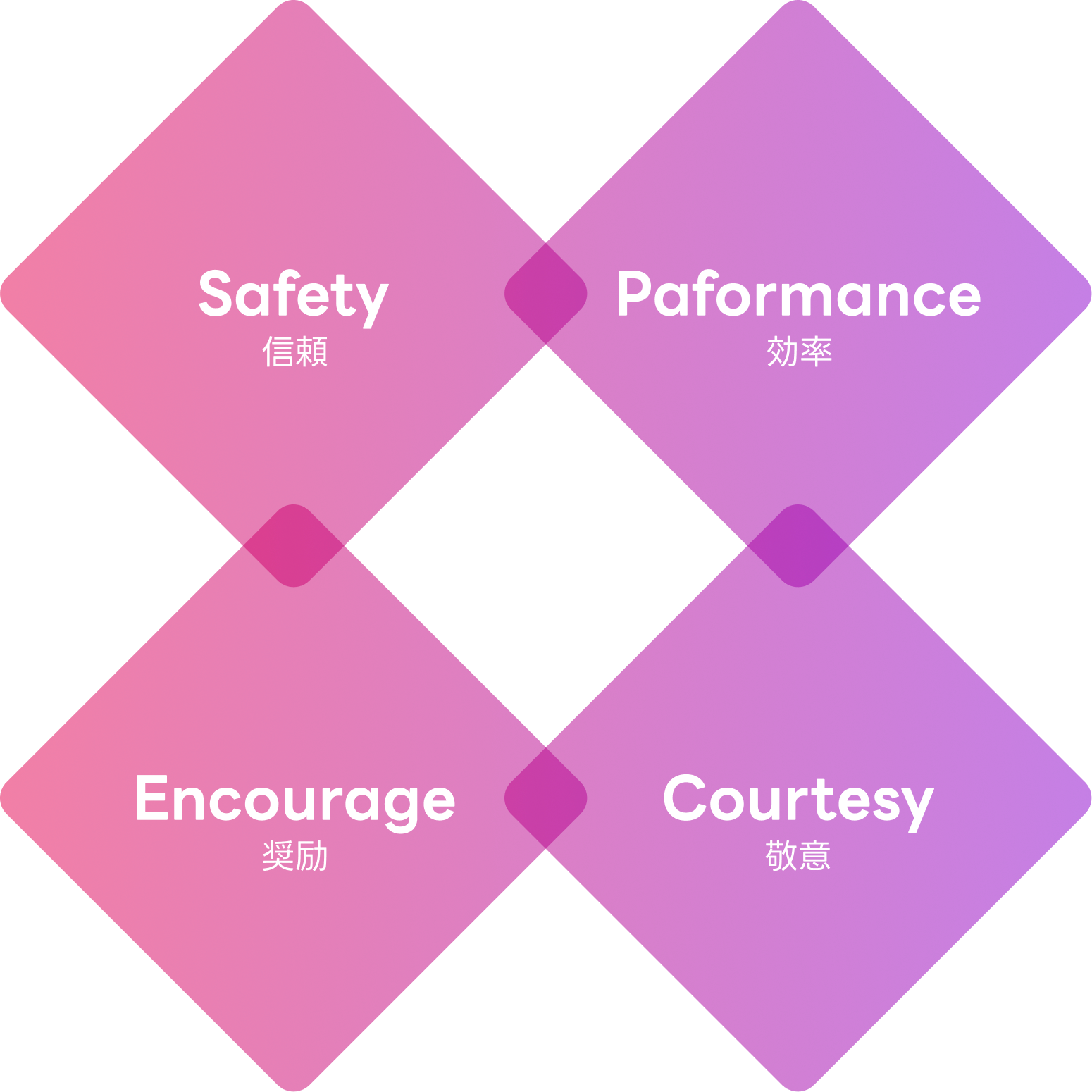 当社は全社員に4つのバリューを主軸においた行動を求め、業務を推進しています。