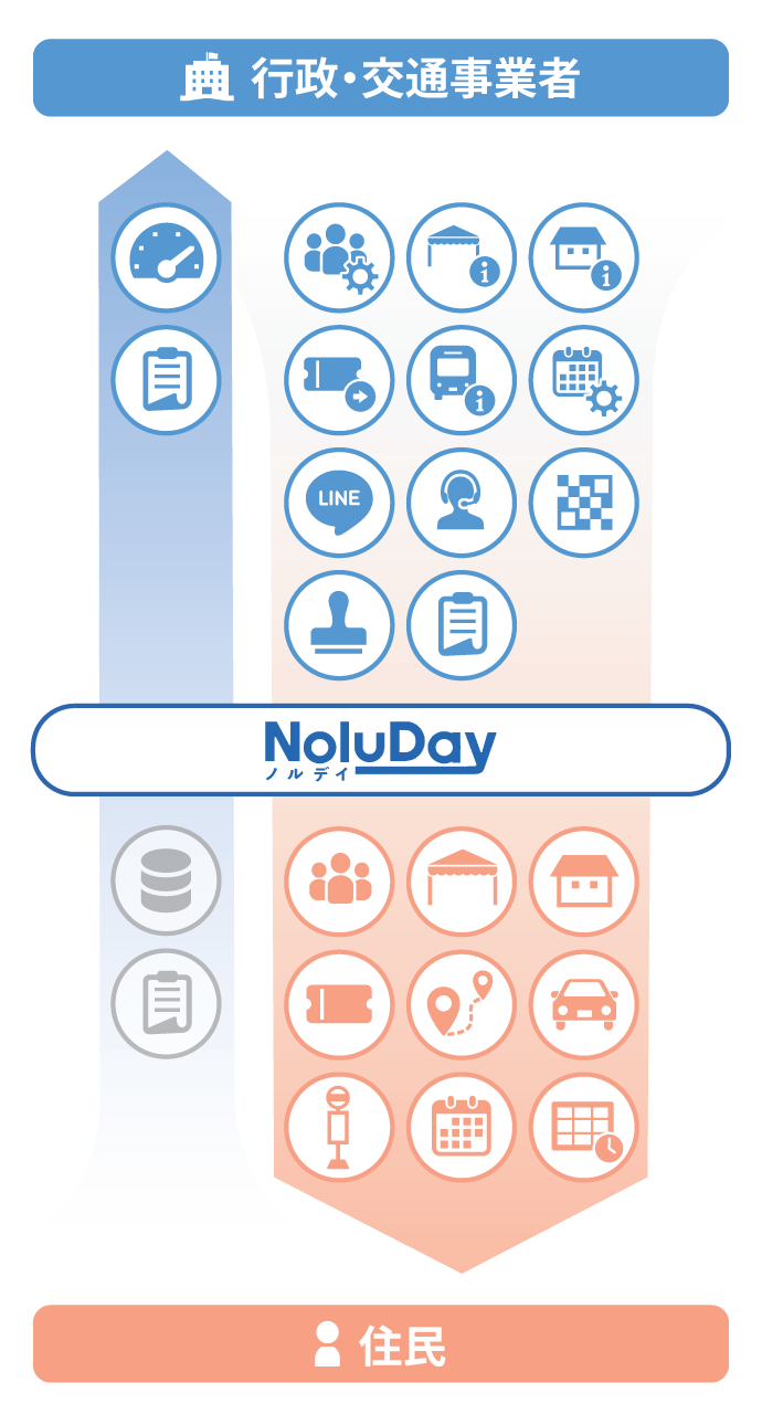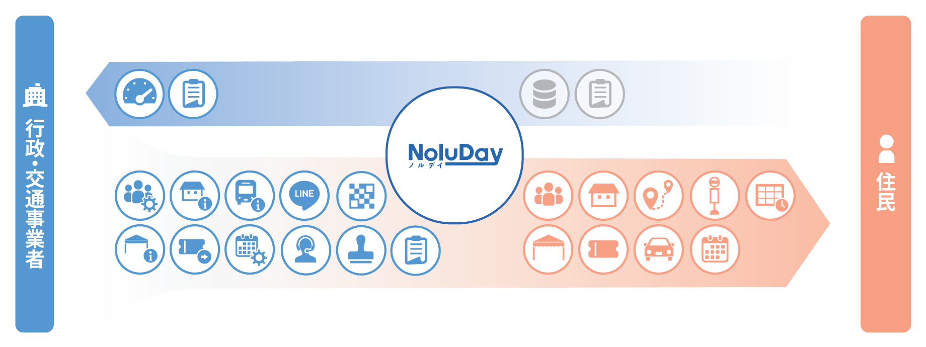 NoluDayは、行政・交通事業者と住民をつなぐコミュニケーションをサポートします。